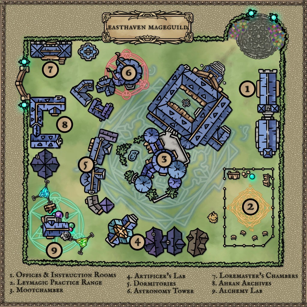 One of the largest Mageguilds in all of Ahra (only those in the Empyrea and Canrish capitals are larger), the Easthaven Mageguild is home to Sages, Novices, and a Loremaster, all dedicated to the magical maintenance and advancement of their city and Ahra as a whole. The Easthaven Mageguild also hosts the Academy, a place where leymages from any walk of life can seek to study their magic.