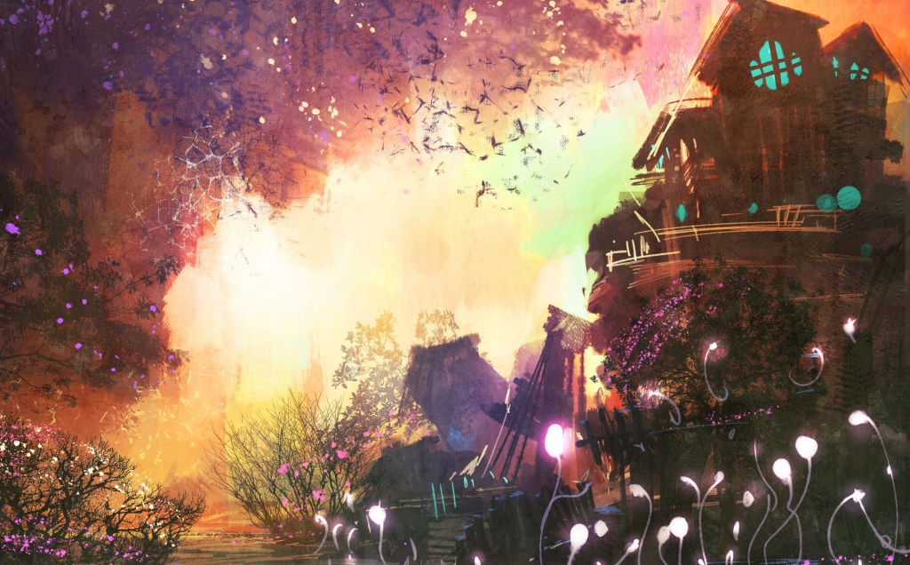 Ancient beyond reckoning, Aixath trees, found in extreme southern Tanahr, the Merrowlands and Umbra, are sacred to many peoples, and are known for their flowers’ healing properties, as well as their legendary beauty. The bell-shaped flowers are most full in the evenings and at night, and are associated with the moon and stars.